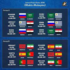 Jadual Piala Dunia Waktu Malaysia - Diadakan pertama kali pada tahun 1930, ajang sepak bola terbesar di dunia ini diselenggarakan setiap empat tahun sekali di negara yang menjadi tuan rumah.. Jadwal babak penyisihan grup piala dunia 2018. Piala dunia 2018 akan diadakan bermula daripada 14 jun sehingga 15 julai 2018 dengan disertai 32 pasukan yang membabitkan 6 konfederasi dan 64 perlawanan akan dilangsungkan. Gol tersebut bermula dari umpan terobosan doan van. Sudah disajikan dalam bentuk grafik/gambar yang cantik. Berikut jadwal timnas indonesia vs malaysia di pra piala dunia 2022 yang akan disiarkan di tvri.