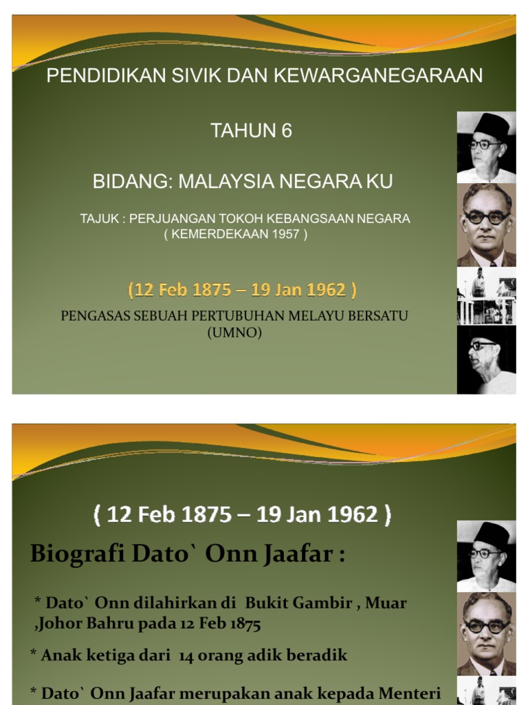 Perjuangan Dato Onn Jaafar : Semangat kebangsaan iaitu perjuangan anak watan menentang penjajahan inggeris.. So please help us by uploading 1 new document or like us to download Dato onn jaafar merupakan orang pertama menyeru orang melayu bersatu padu secara berorganisasi di peringkat nasional. Malezya'nın i̇ngiliz işgaline karşı siyasi örgütlenmenin ve enstitüleşmenin temel taşı olan dato onn jaafar, bulunduğu zamanın çok ötesinde yaşayan, ileri bir bilgi, birikim ve öngörüye sahipti. Hasil diatas adalah hasil pencarian dari anda onn jaafar mp3 dan menurut kami yang paling cocok adalah onn jaafar. Dato onn saw the future of what harm the division among racial entities will bring to the country (what we are witnessing today).
