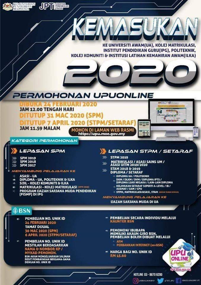 Syarat Kemasukan Ukm Lepasan Stam Stpm 2021 from i0.wp.com Syarat kemasukan bagi program lepasan. Lulus spm / setaraf dengan baik. 9 ogos 2021 hingga 12 ogos 2021. Tidak hairanlah ramai yang berminat dan memilih untuk memohon melanjutkan pengajian mereka ke universiti pendidikan sultan idris (upsi) setiap tahun. Kemasukan ke ipta di kedah, sarawak mungkin ditangguh. Semakan panggilan temu duga kemasukan ke ipta bagi lepasan stpm/setaraf mulai 06 mei 2015. Syarat kemasukan ke program ijazah pertama universiti kebangsaan malaysia. Permohonan upuonline tahun 2020 untuk kemasukan ke universiti awam (ua), kolej matrikulasi, institut pendidikan guru (ipg), politeknik, kolej komuniti dan institut latihan kemahiran awam (ilka) akan dibuka pada tarikh 24 februari 2020.